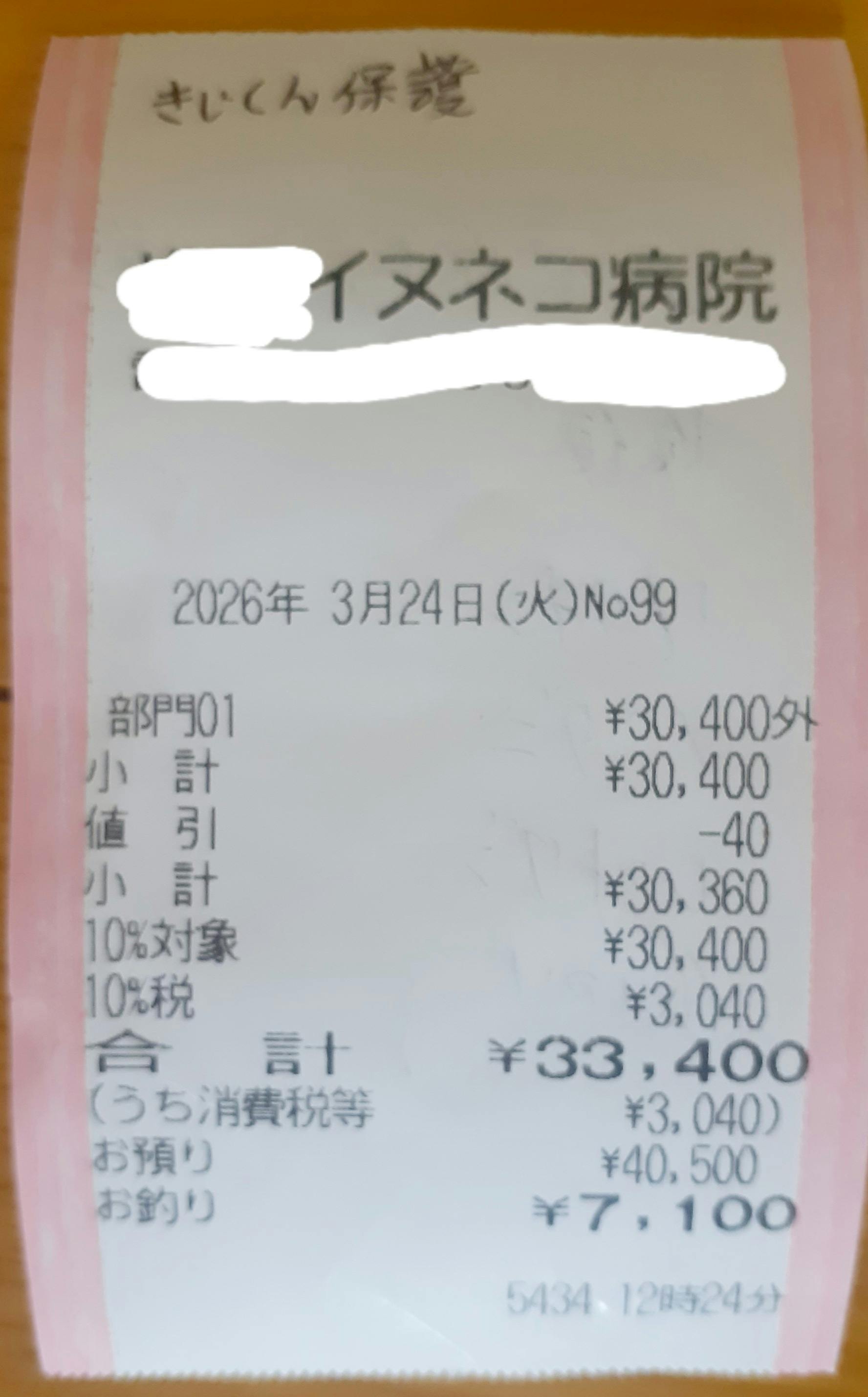 お会計は33,400円でした。