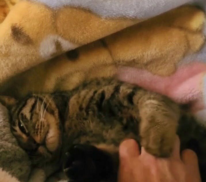きじくん既にゴロ刷りさんの甘えん坊です。お外にいる時から触れないけど道端で、ゴロンゴロンしていて、名前も呼ぶと返事するとても賢い子でした。甘えん坊になる予感はありましたが、こんなにも早く馴染むとは思ってませんでした。