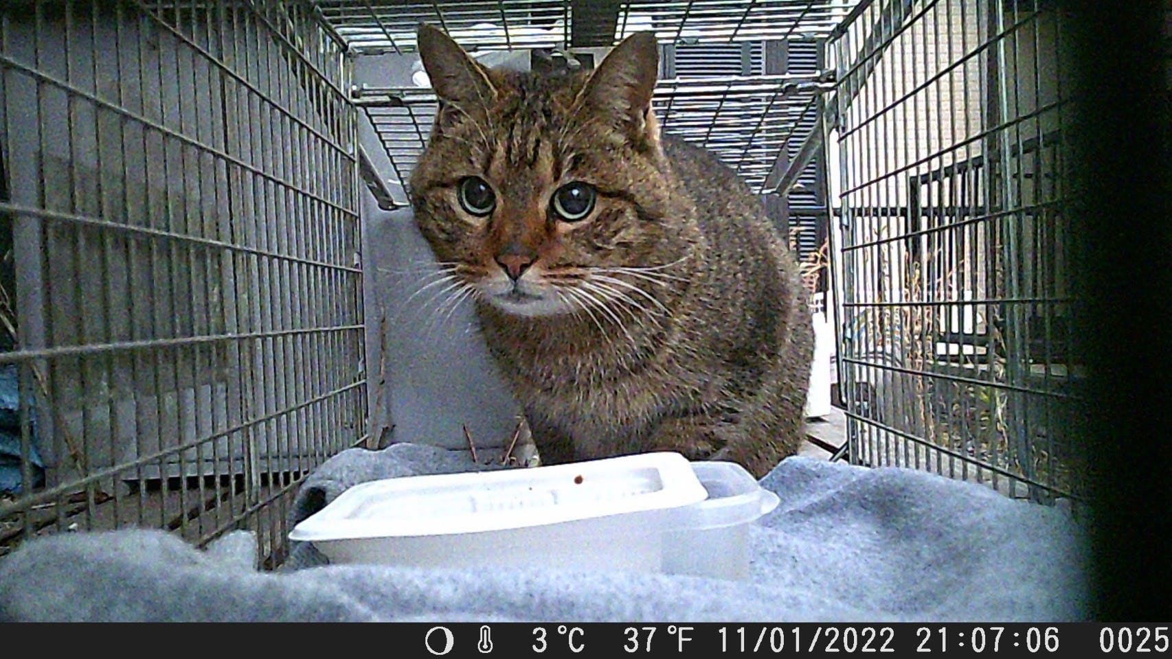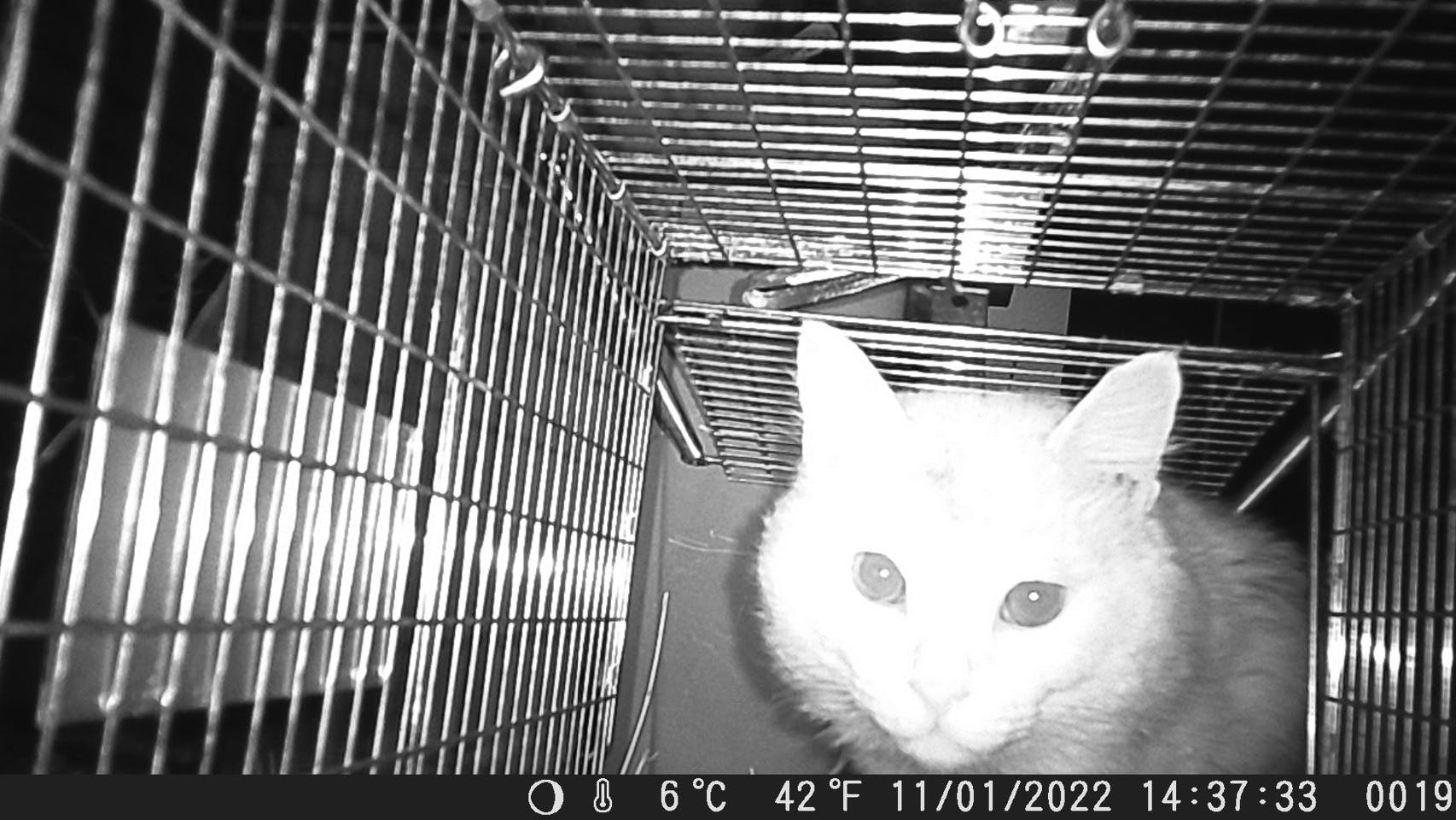 今度はご自宅の猫の捕獲を頑張って貰いました。カメラと餌で様子見して貰ったところ、目的の猫の他にも二匹の猫がきていることが判明しました。