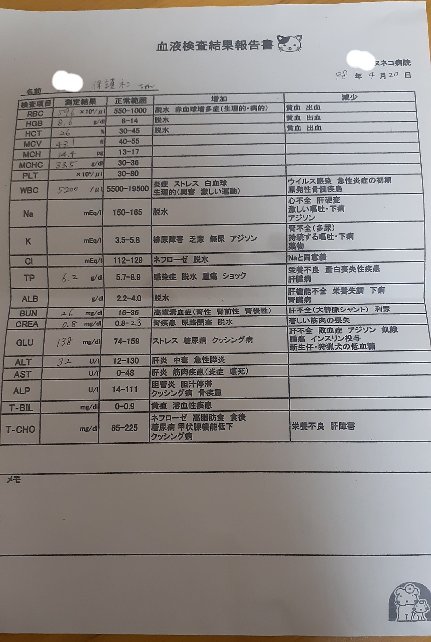 血液検査も少し貧血気味でしたが