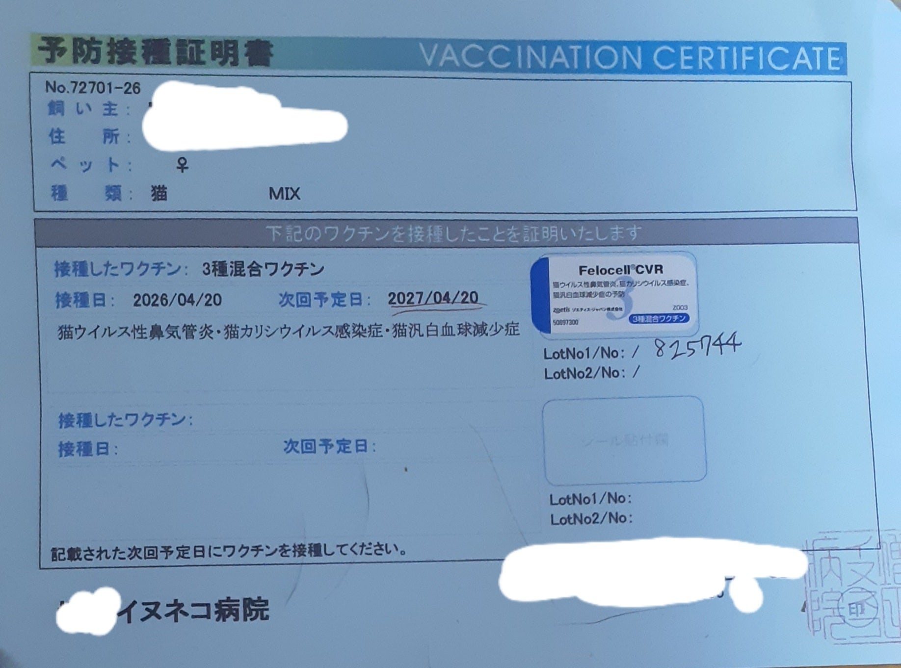 爪切りをして、駆虫、ワクチンも打ちました。