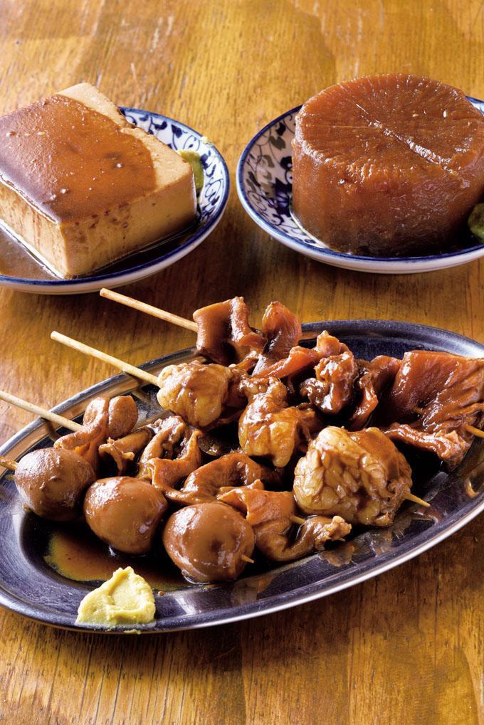 名物の豆腐、大根、うずら串、牛すじ串、牛ホルモン串、てっぽう串!