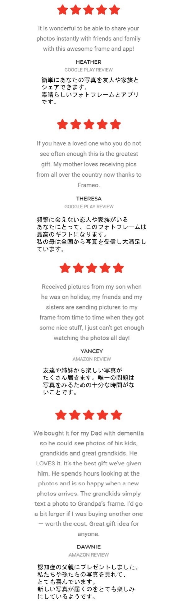 そんな中、海外ではクラウドサービスや無線LANを通じてスマホから写真をデジタルフォトフレームに送付する方法があり、離れて暮らす両親と写真をシェアするツールとして、凄く評価が高いことを知りました。