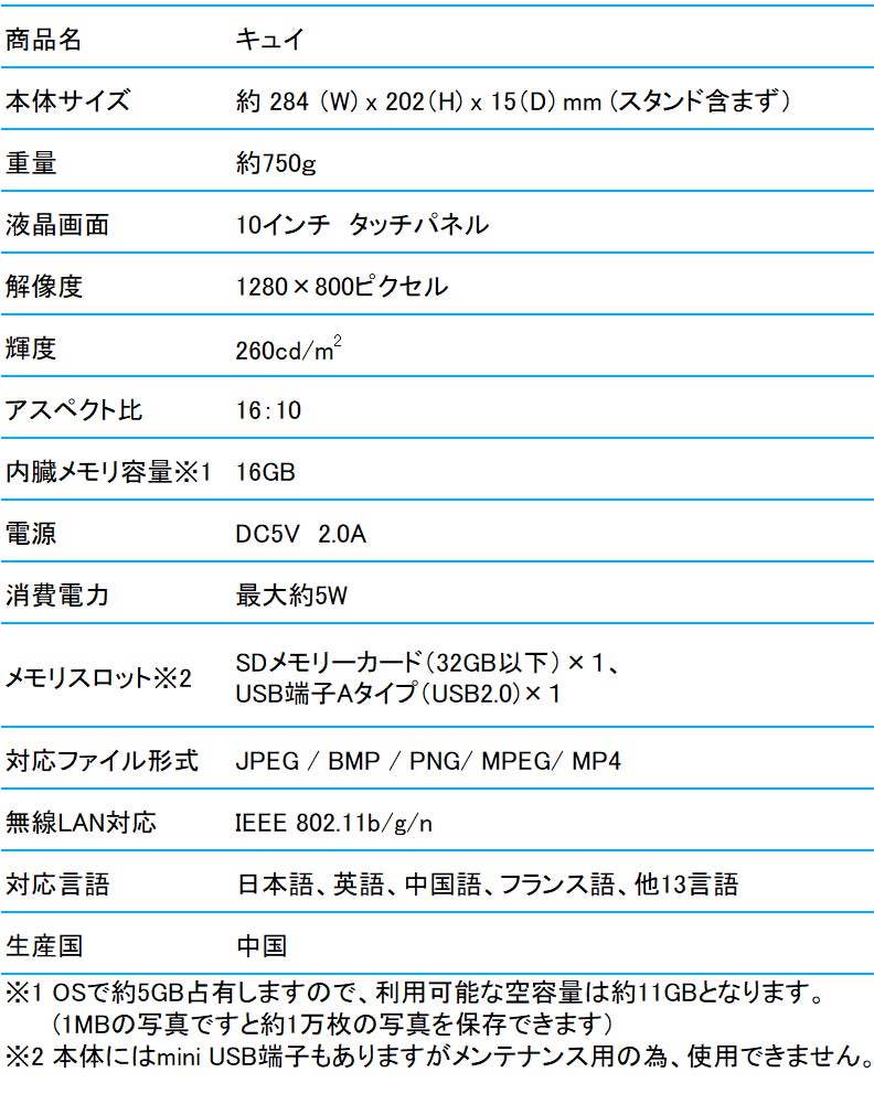 10インチ大画面でストレスなくお子さんの元気な写真をいくらでも見ることができます。