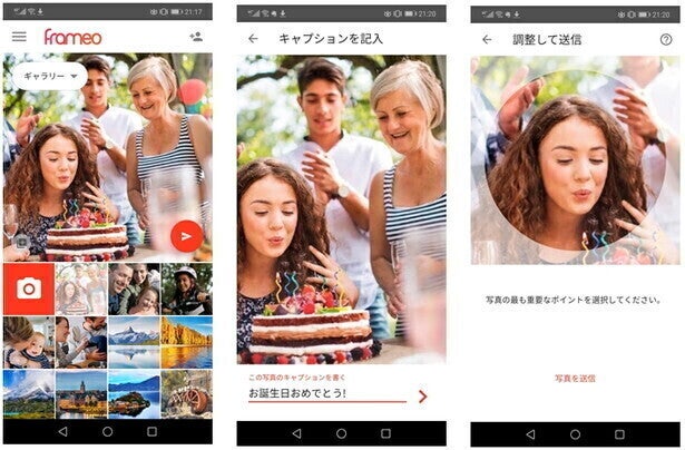 送信側のスマホアプリはインスタに投稿する感覚で簡単に写真を送ることができるのでこまめに娘たちの写真を両親に送るようになりました。写真を受け取った両親から電話が掛かってくることもあり、娘たちの話題で盛り上がる機会が増え、お互いとても満足しています。