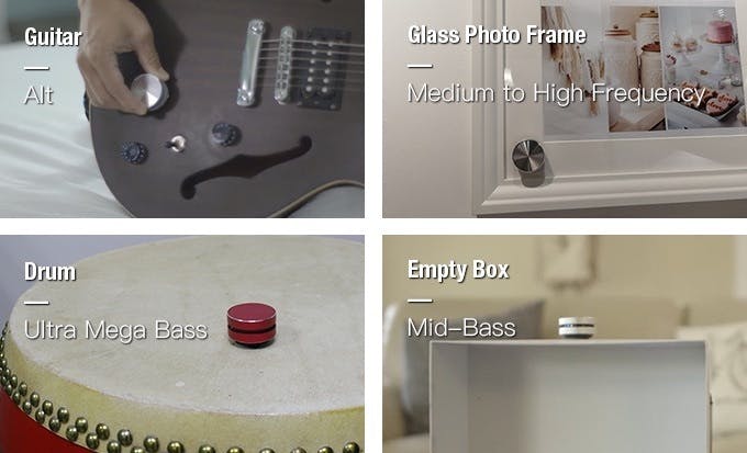 どこに貼り付けても楽しいですが、ギターやウクレレ、太鼓等、楽器はもともと音が反響しますので感動ものです!