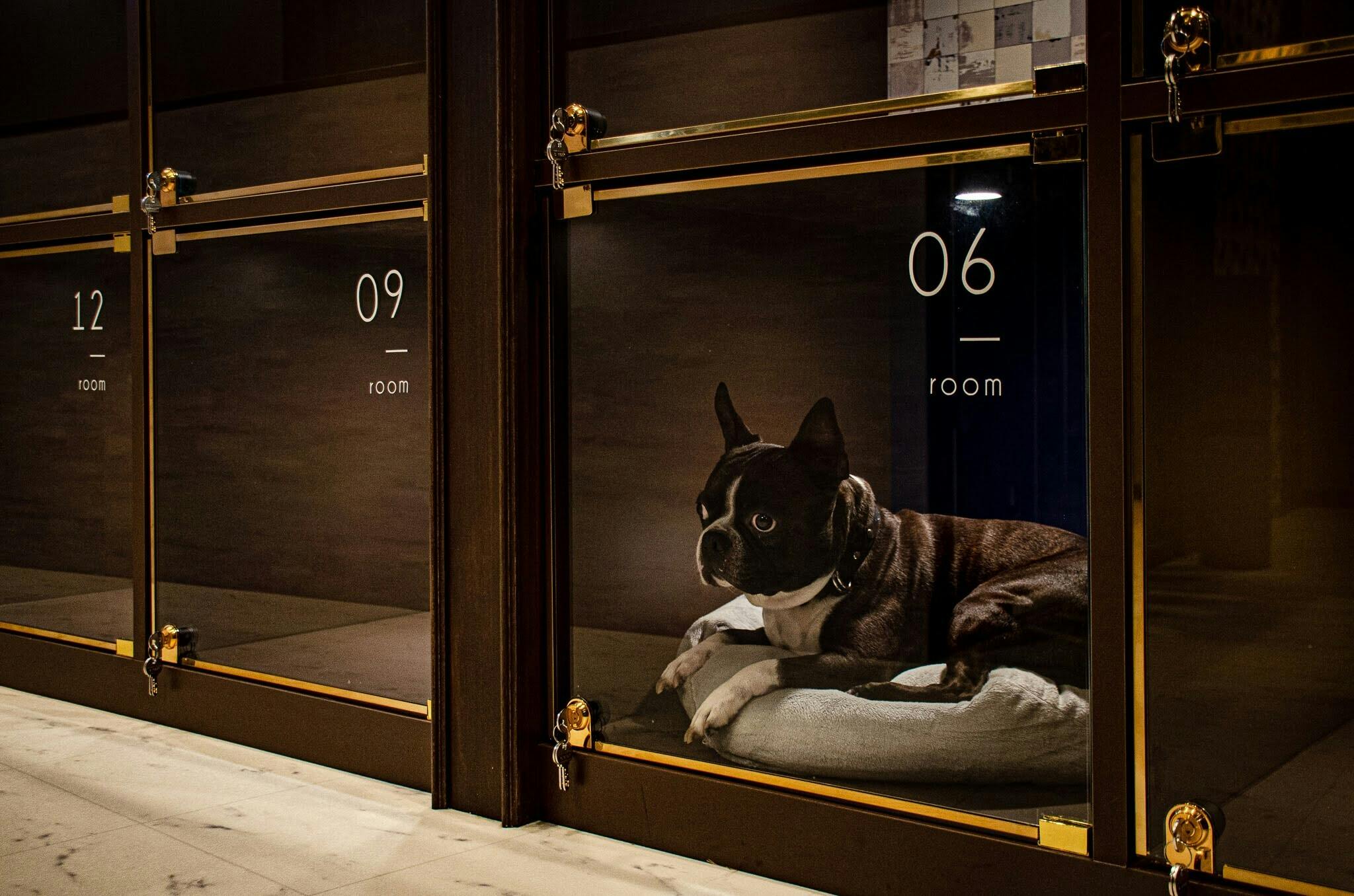 こちらのホテルが出来た経緯も説明しますと、私達が、ペットホテル事業に着手した際に色々なホテルを調べたところワンチャン向けのホテルはどのホテルも非常にダサく、尚且つ高額な商品が多く、自分の可愛い家族が入るホテルなのに檻のような見た目の物が非常に多く、私達ならオリジナル作れるのではないかと、弊社リフォーム部と家具の制作に入り試行錯誤しながら出来たのがこちらのホテルです。