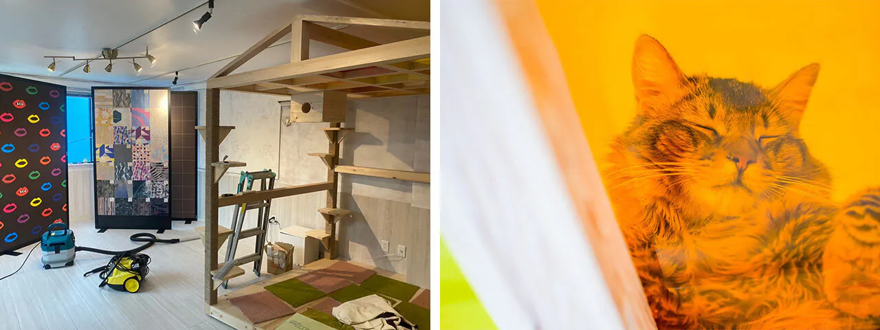また、足腰の負担になりにくいクッション性が高い床材や壁に爪を立ててしまっても、キズが残りづらい壁材を使用しております。早く猫ちゃんわんちゃんと飼い主さんに実際に遊びにきていただき、この特別さを感じていただきたい….という想いは日に日に募ります。