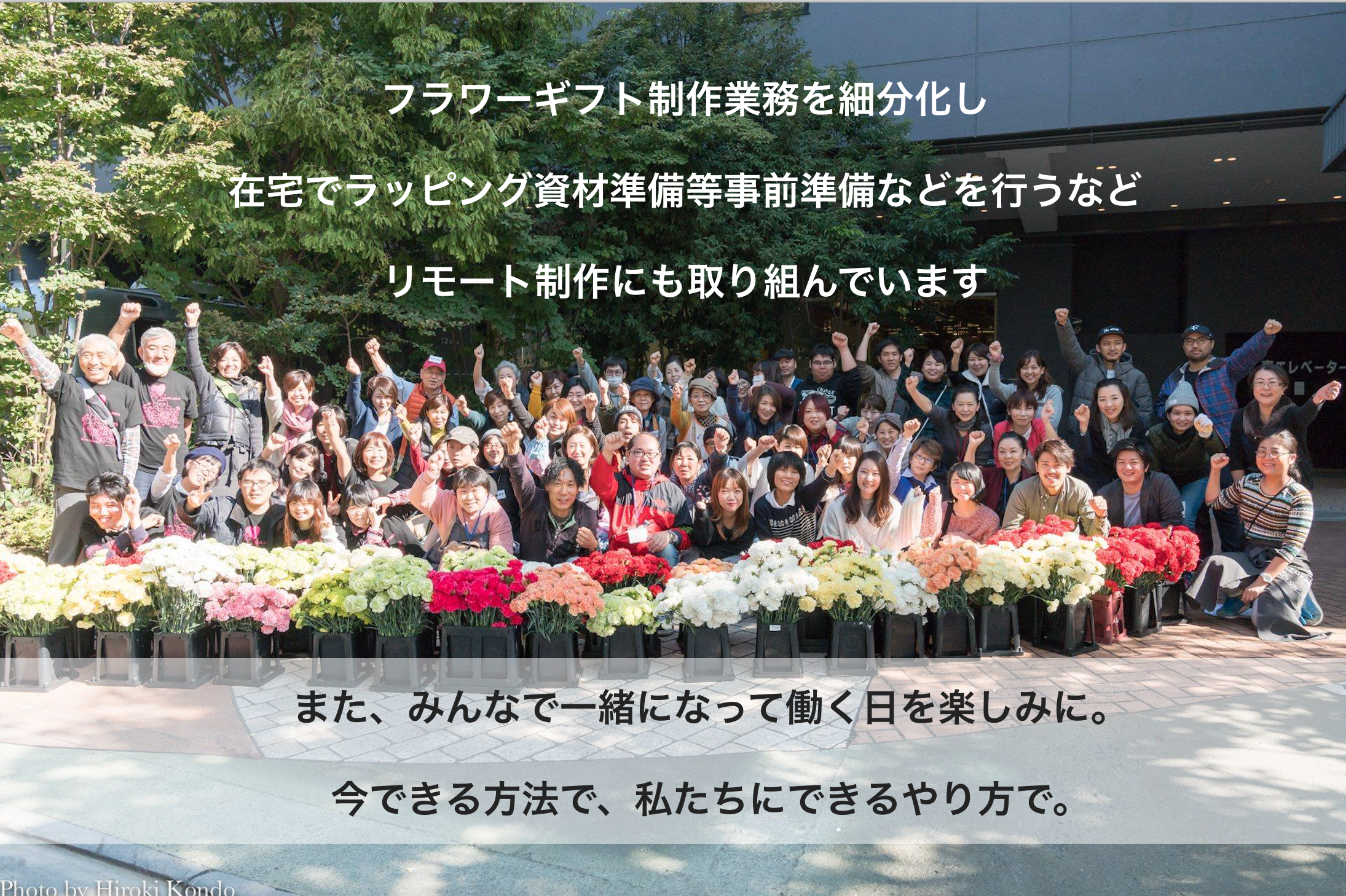 受注キャンセルとなった花々を大切に守りたいという思い、そして、雇用を守る使命と共にこの度の実施に至っています。新型コロナウィルス感染拡大防止と共に、全力で取り組んでいきたいと思っています。
