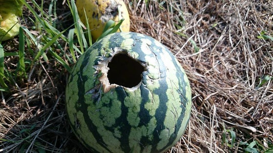 アライグマにやられました。棚に上げて綺麗なスイカそろそろ収穫時期だったんですが全滅です自然豊かな所ですが農作物の被害はハクビシン、アライグマが最近は多いんです。外来種で日本に居なかった種ですが手を使いますからどうしょうもないです今回もネットと竹で二重に覆ってたんですがこんな状態です。穴の空いてる所から手つっこんで綺麗に食べてます。自然と共存するのは難しいですね~とりあえず法隆寺のお客様区画は対策考えます子供さんが楽しみにしてるんで僕の所でまだ良かったです。農業に携わる僕が言うたらアカンのですが、アライグマもハクビシンも被害者ですからね。ペットとして毛皮用として持ち込まれ農作物を荒らすから駆除する殺す違いますよね?奈良県も住宅化が進み減反政策や後継者不足で畑は荒れる山も荒れる余計に被害は集中します。ではどうすればいいかですが解らないのが解ります。はるか昔縄文時代より前に日本で農業が始まり自然と共存した物がたかだか何十年でこの状態ですからね。一度バランスを崩した自然を再生する棚田でさえも何世代もかけて作ってるんですから全体となるともう僕ごときでは解らないのが解る位です。ただ解らないなりに考えて出来る事少しずつでもやります。
