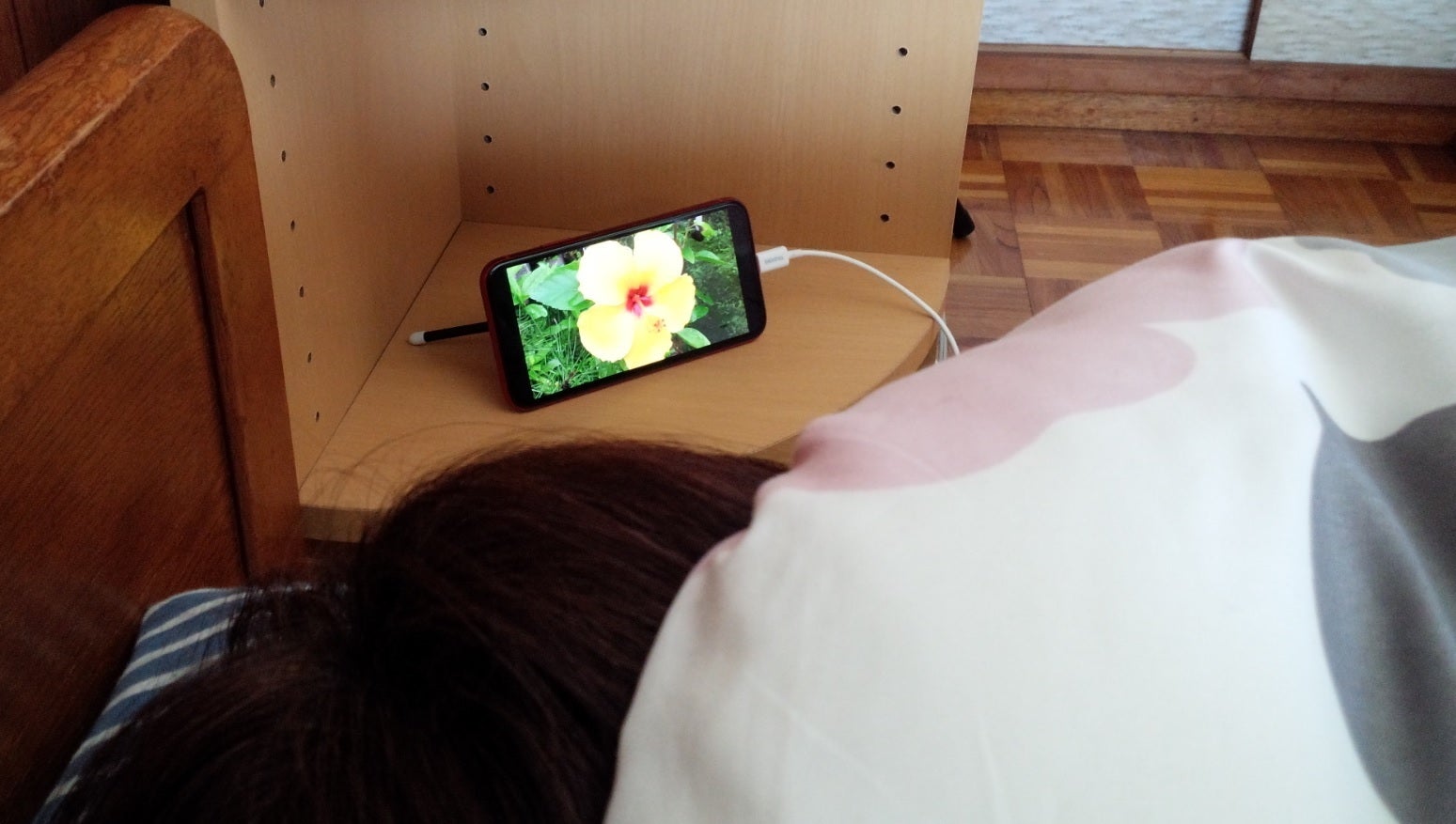 「ヘイ 〇〇、ハイビスカスを表示して」と呼びかければ、布団から手を出さずに寝たまま画面が見れます。 寒い冬は特に重宝します。