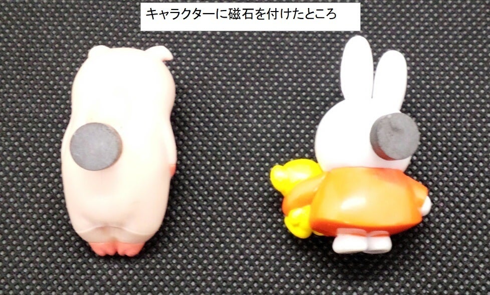 また、左図のようにご自分でお気に入りのキャラクターに磁石を接着して使用しても楽しいです。