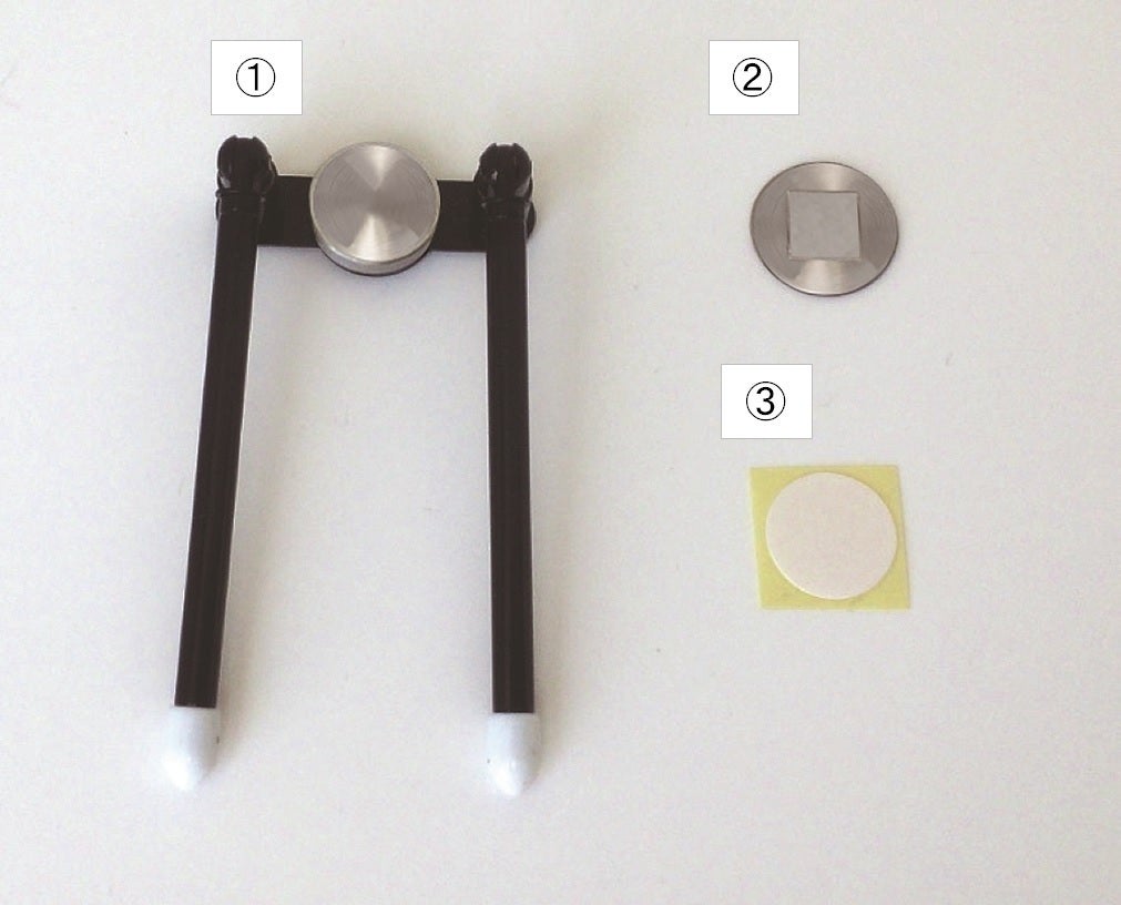 1) 両面シールの片側をスマホ側結合部材の裏面に接着します。