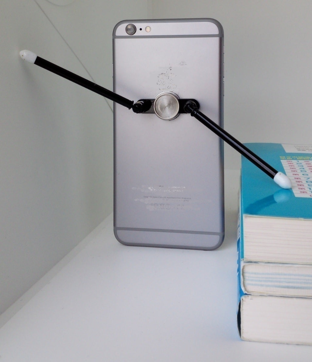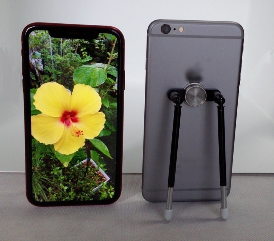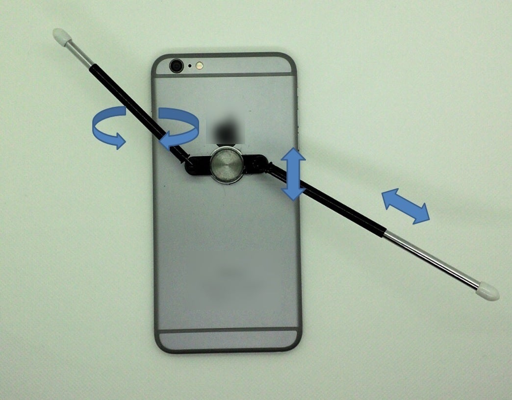 それら問題を解決すべく既にいくつかのスマートフォン用スタンドが販売されていますが、そのいずれも、凹凸のある場所での設置は不安定で、転んでしまったり携行するには不便だったりと使い勝手は良いものではありませんでした。