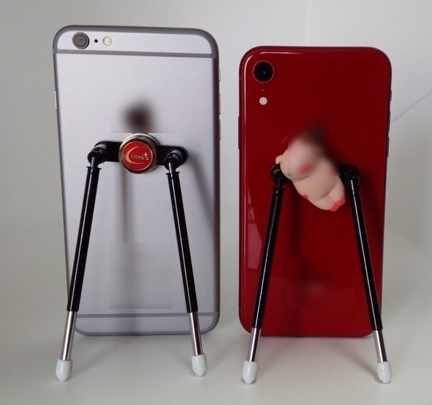 そこで、考案したのがDOKO’Sです。試作品を周囲の方々に見て触ってもらい、「とても良い」と評価していただき自信がつきました。凹凸のある場所でも安定設置でき、携行するのに邪魔にならず、アクセサリーやキャラクターを装着すると見た目もかわいくて良い、と言っていただきました。