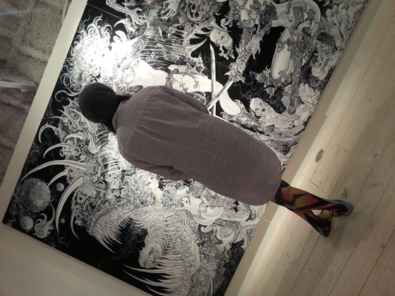どうも、こんにちは。トップ画像は前回のMICROUタイツを購入して下さった、アツコバルー(ギャラリー)のマネージャーさんです。 今回は、なぎさちゃんにTシャツを着てもらいました。マネージャーのなぎささんは158cm。XXLサイズのTシャツを着ると、ワンピースになります。なかなかいい感じですね(←タイツの活動報告の頃からボキャブラリーは増えてません、ごめんなさい)ところで、背景の絵はバロン吉元先生の大作達。渋谷のギャラリー、アツコバルーにて現在「バロン吉元 / 寺田克也 バッテラ【bateira】展」を開催中。http://l-amusee.com/atsukobarouh/schedule/2017/0318_4125.php4月23日の日曜日までです。気になっている方は、是非是非。嬉しい事に、撮影可なんです。 ではでは、今日はこの辺で。