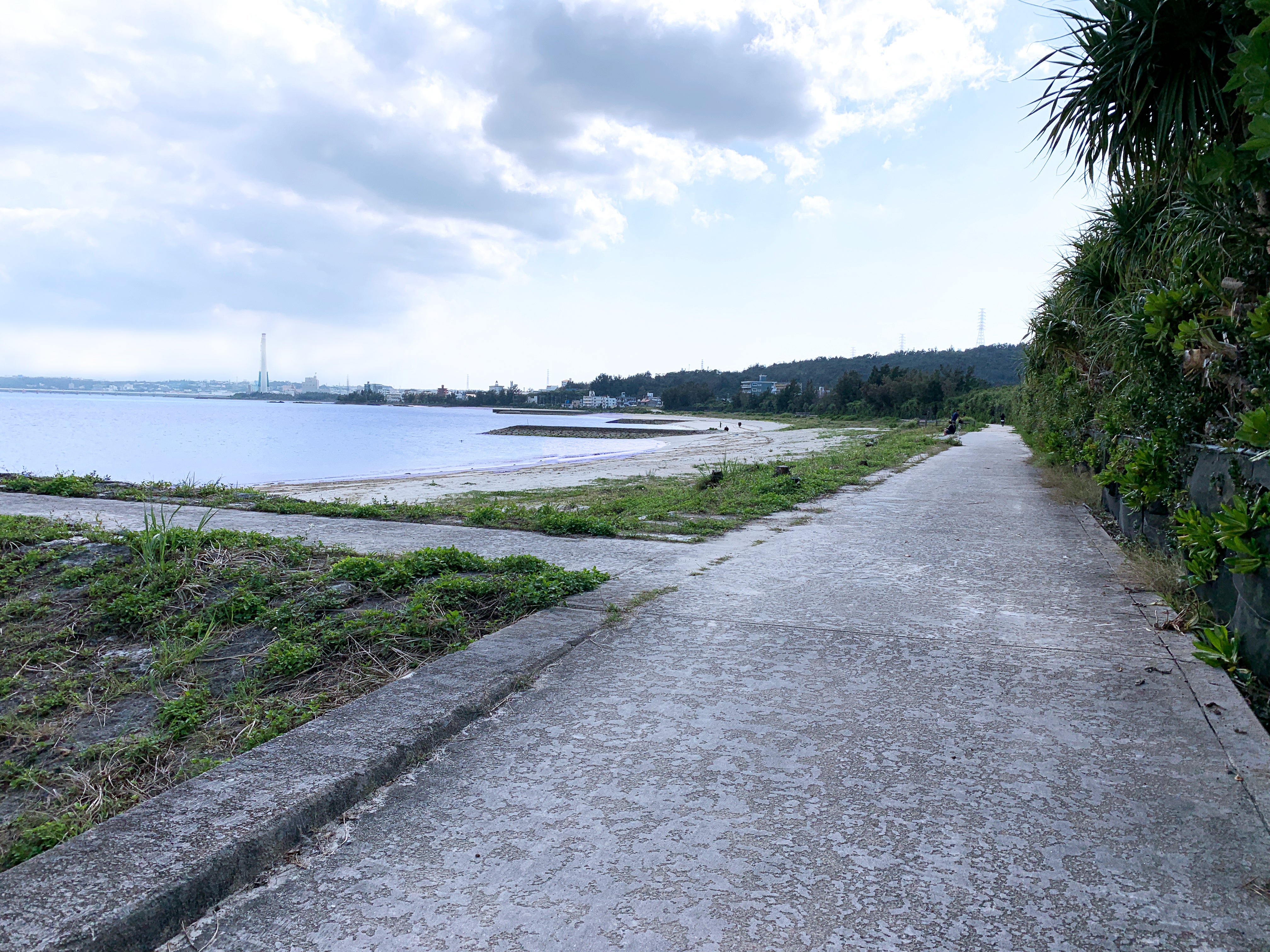 パーラーで食事の後はビーチの散歩道でお散歩。