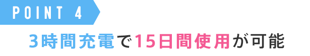 ③3時間のフル充電で15日間も使用ができる省エネ設計