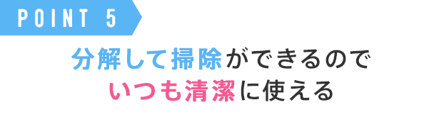 各パーツの形状も簡単なので洗剤や水が隙間に溜まらず、早く乾燥もするので常に清潔な状態でご使用いただけます。