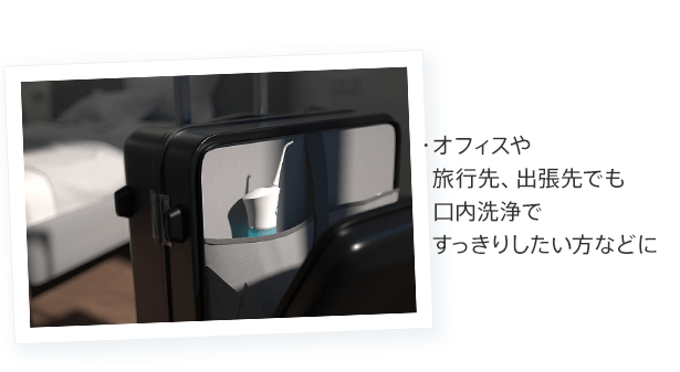 もちろん充電式なので、備え付け型の口腔洗浄器のように使用中にコードが邪魔になることもありません。