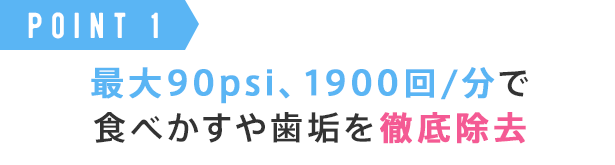 ①最大90psiのジェット水流で歯間や歯周ポケットの歯垢を除去