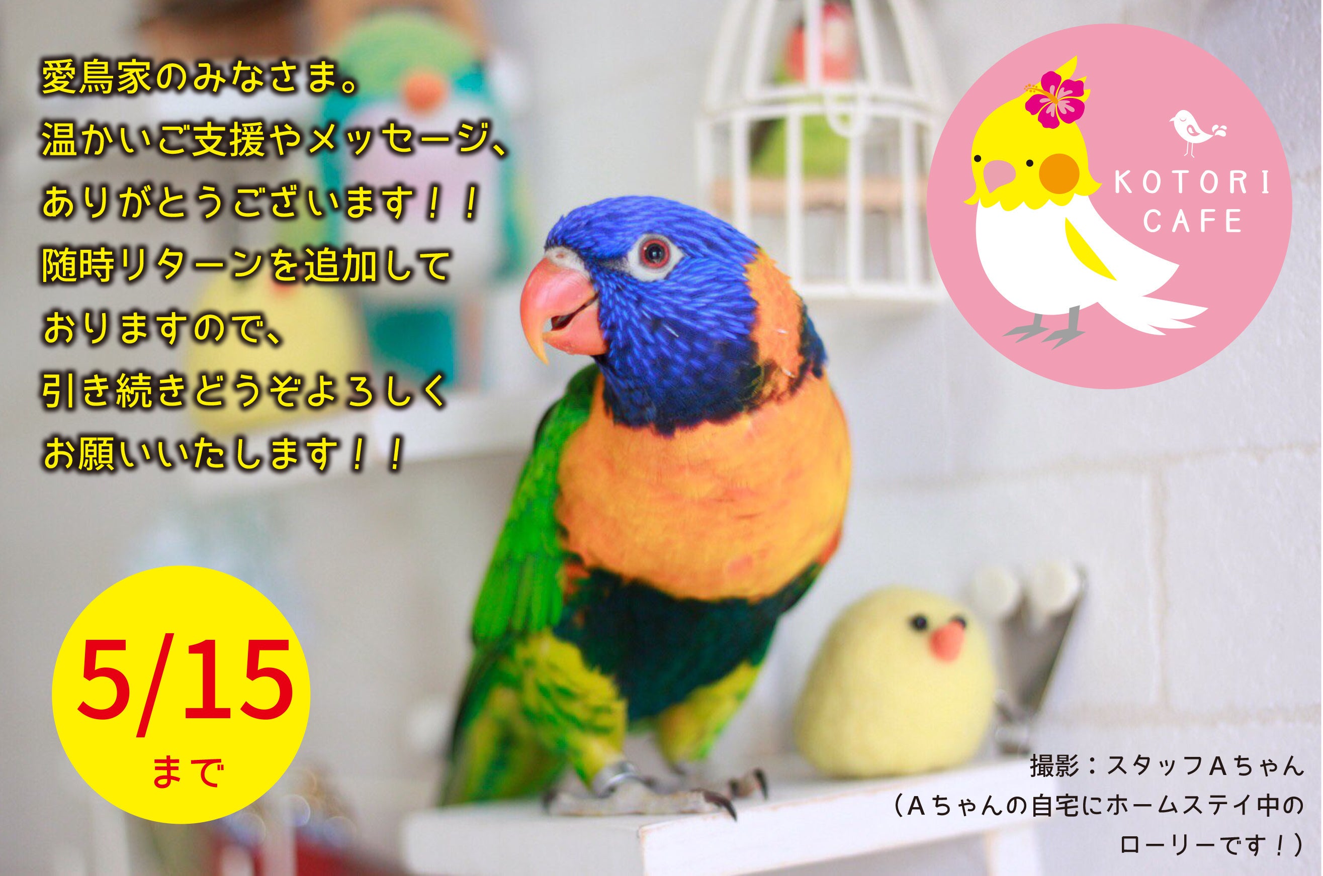 世の中が落ち着きましたら、小鳥さんに会いに来ていただけましたら幸いです。