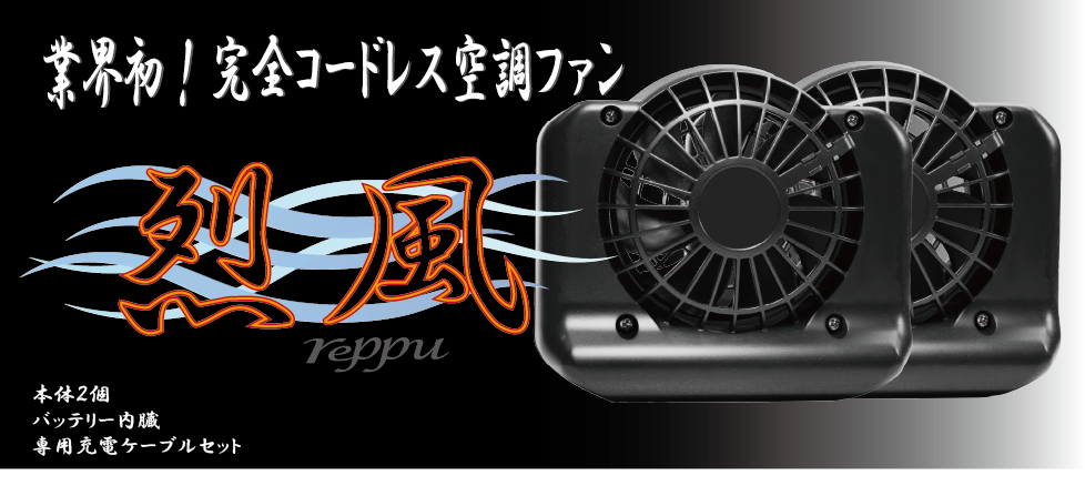 「烈風」は、空調衣服に取り付ける空調ファンとして、取付時間も短縮でき、コードレス・風力・静音の3つにこだわった現場作業の人のために作られました。