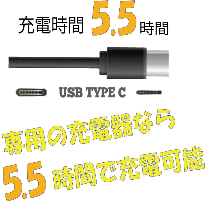 ※ご自宅にある、充電ケーブルでも充電可能です。(充電時間は異なります。)