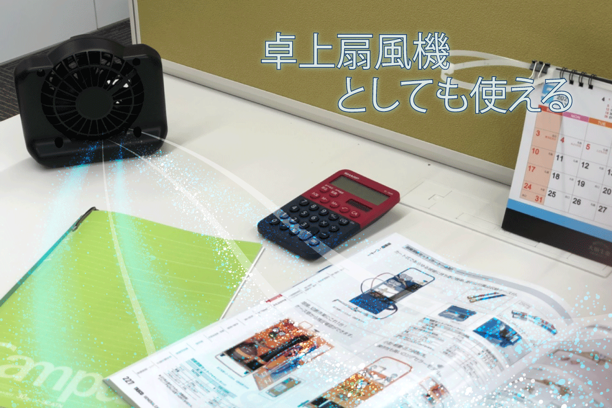 現場作業が終わった後の事務処理など、デスクでの扇風機として