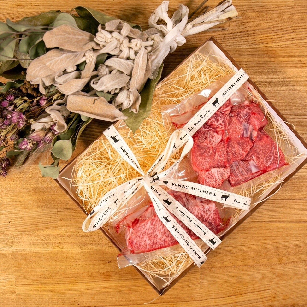 *肉のかねき×ゆめの菓あきぞう・・・和菓子業界の中で最注目されている職人のひとりである「あき」さん。あきさんのセンス溢れる和菓子スイーツの中で人気のアイスキャンディー「氷室バー」とかねき商店の黒毛和牛しゃぶしゃぶ肉がコラボ。お肉とスイーツのセットは最強です。