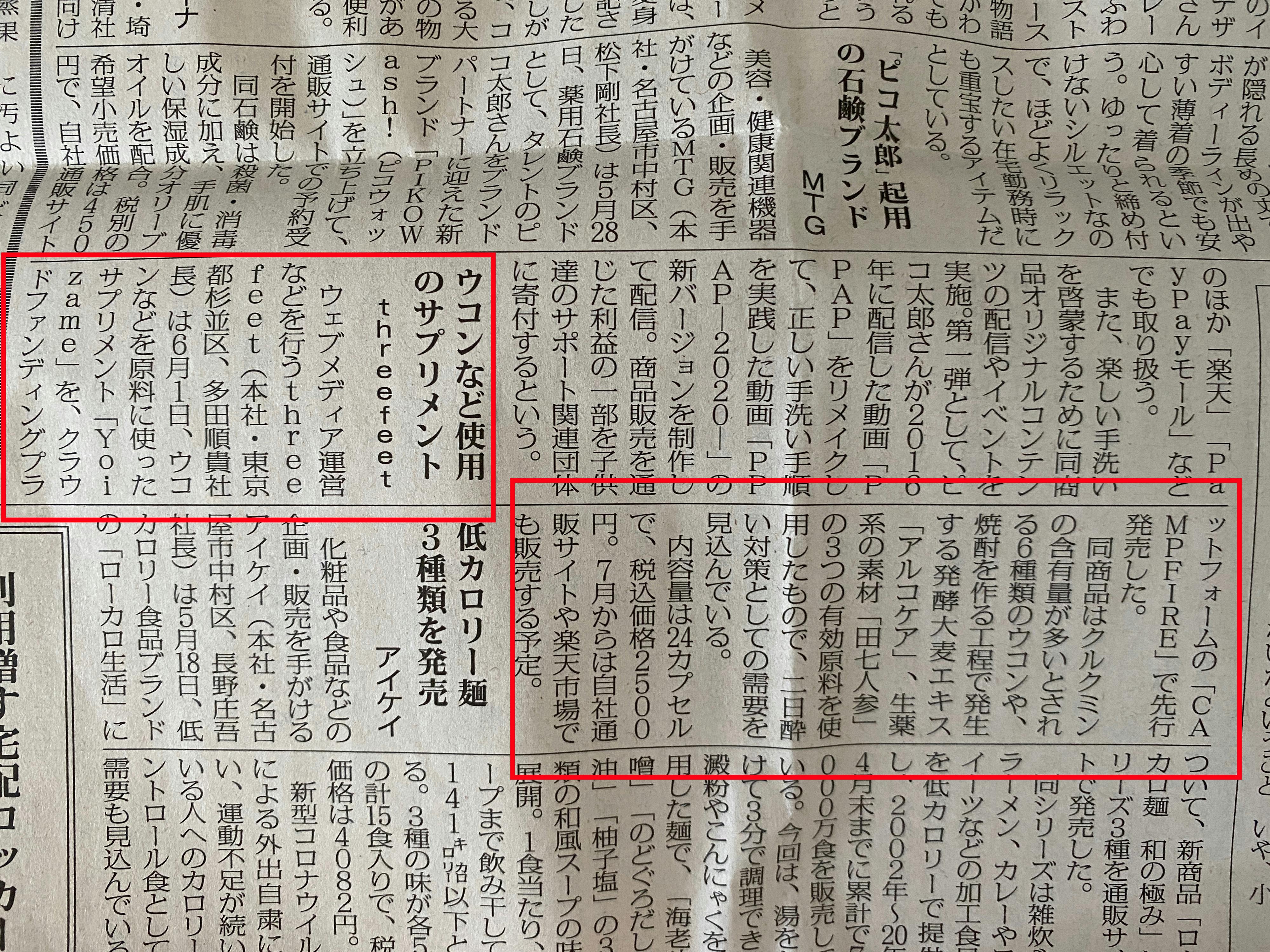 6/11(木)発行の通販新聞さんに、CAMPFIREにて先行販売中のYoizameを取り上げていただきました。