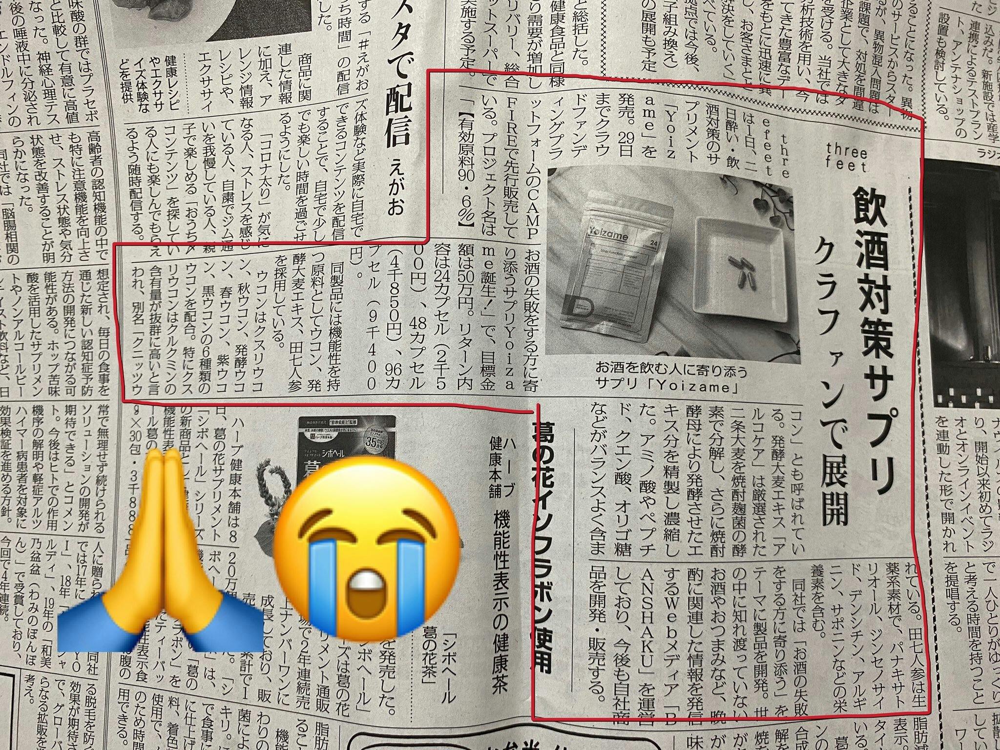 引き続き6/29までプロジェクトは進行しますが、今日は食品新聞さんにYoizameを取り上げていただいたことを報告します。