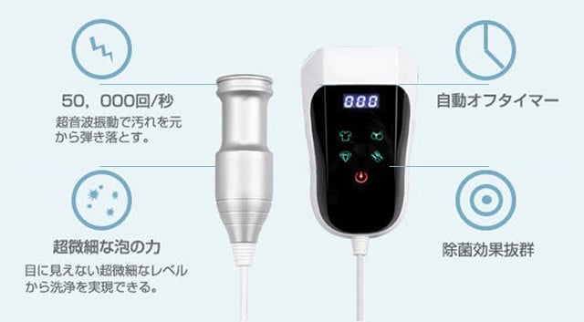 超音波が水の中で作り出す1000以上もの超微細な真空の泡が、弾ける力を利用して汚れを落とします。