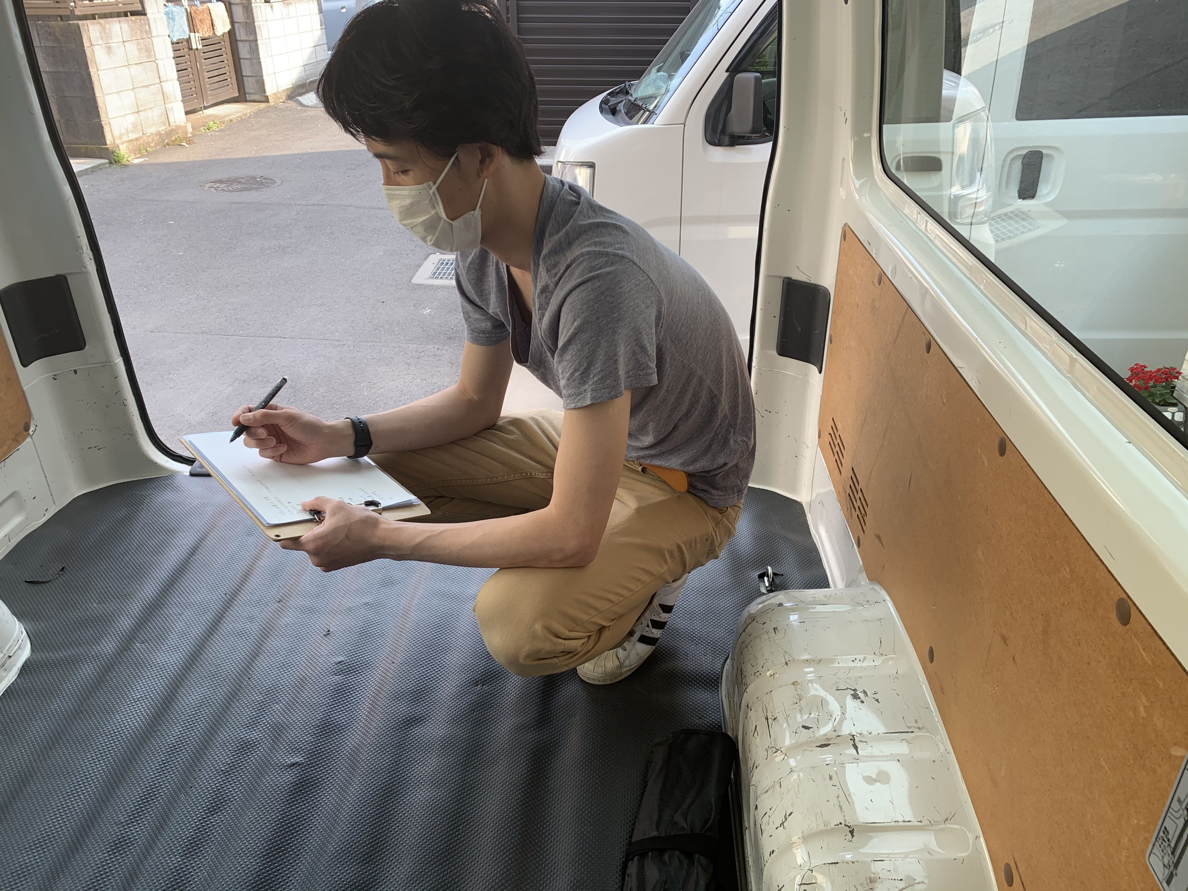 5月1日(金)CHIGASAKI BASEさんにベースとなる車両を納車完了!(写真はCHIGASAKI BASEの矢野さん)内装の確認を細かく行なって、何箇所か変更も加えてもらいました。完全に車内が一つの部屋になるイメージですので、施術はもちろんのこと、この中でテレワークでのお仕事などもできるように設計しています。この移動車の名前は「移動整体院マキノ(仮)」に予定しています(ちょっとダサい⁈)専用ホームページも作成中です。作成中のホームページを次回の活動報告にてご紹介いたします!