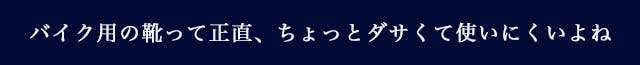 若い方が気軽に、バイクに乗る以外でも履けるライディングシューズがありませんでした。