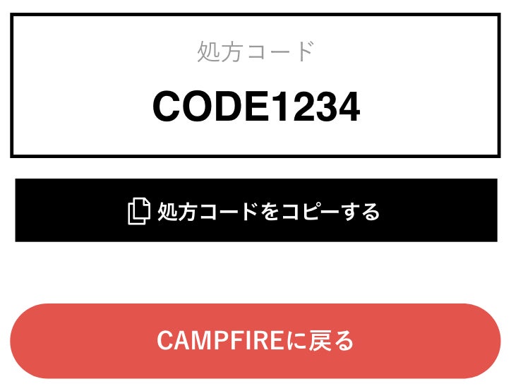 診断完了後に表示される、処方コードをボタンを押してコピーしてください。