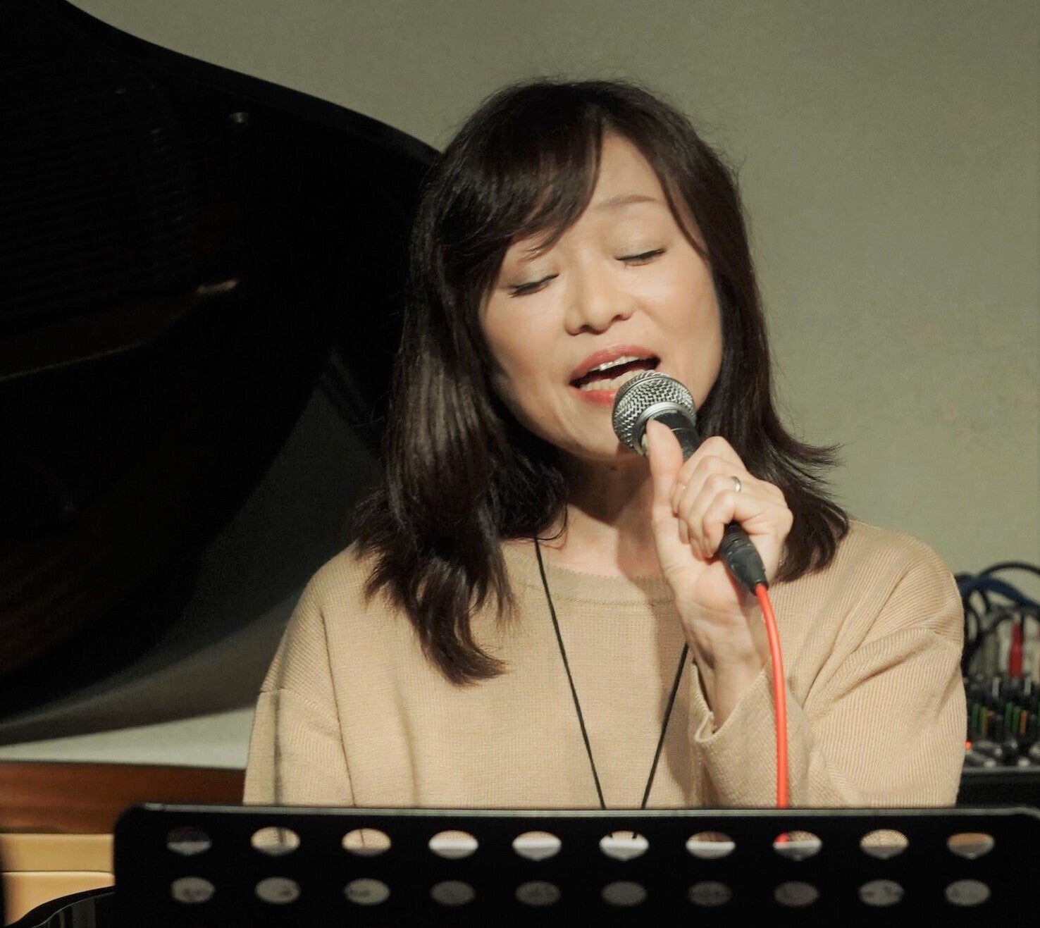 ママはピアノのメンテナンスは必ず欠かさない。最近では店のPAシステムを天王洲KIWAの金森さんとともにスピーカーやミキサーをアップグレード。