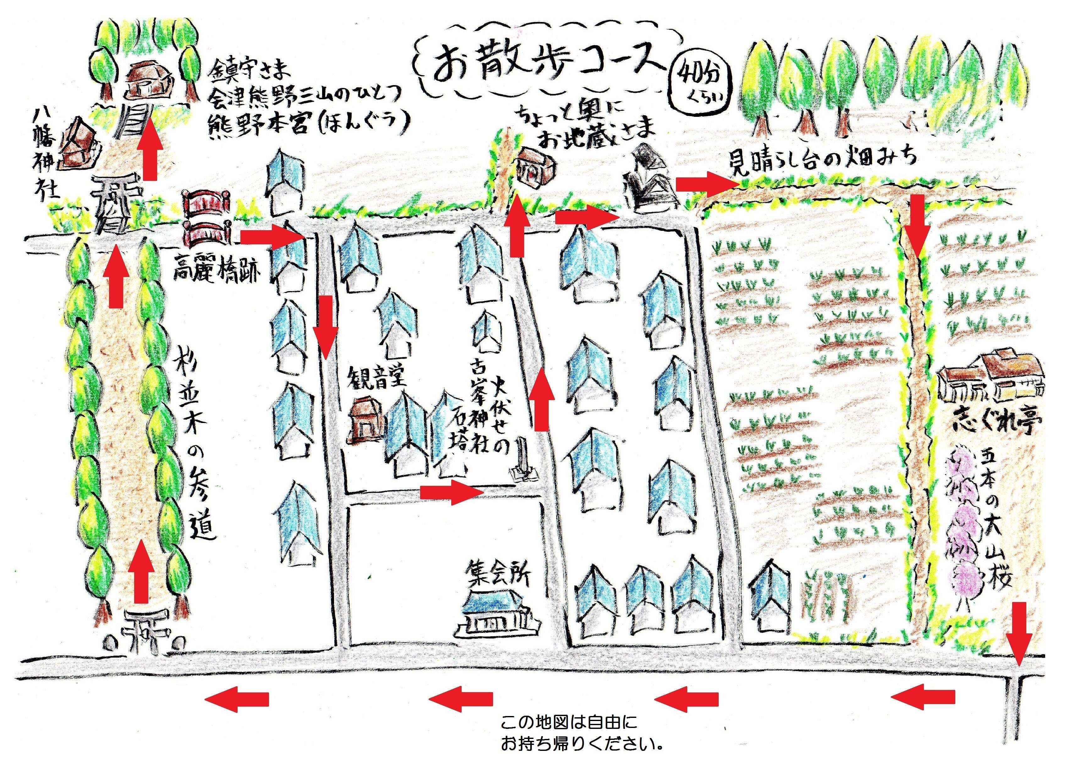 ●店主作画のお散歩地図をお配りしています(裏には各所の説明文)