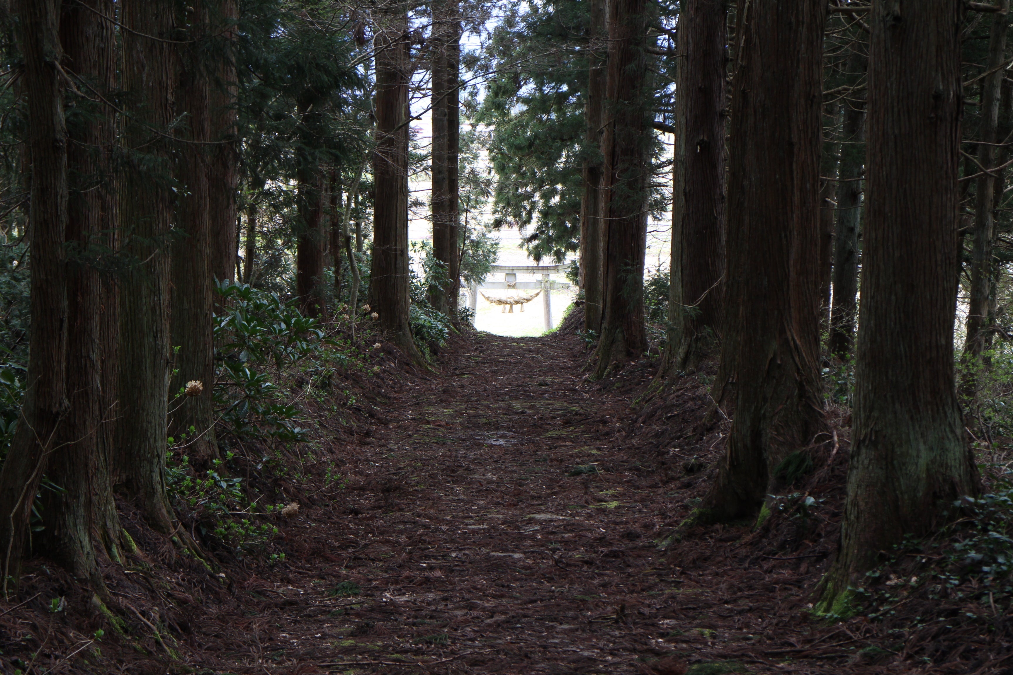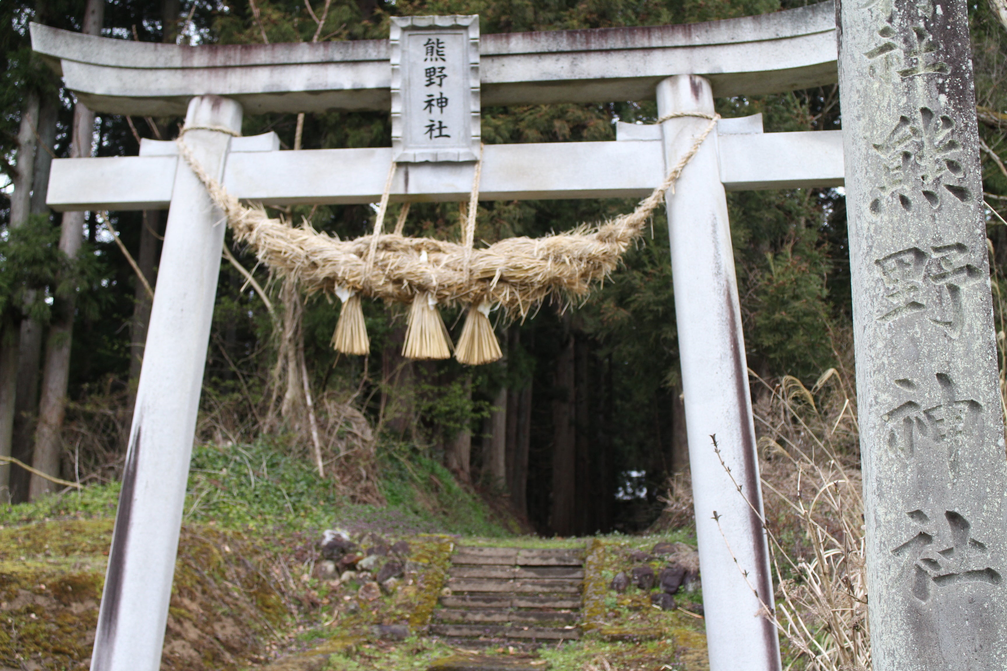 ●鳥居、長い参道の先には鎮守さまの熊野神社 ー 会津熊野三山の本宮