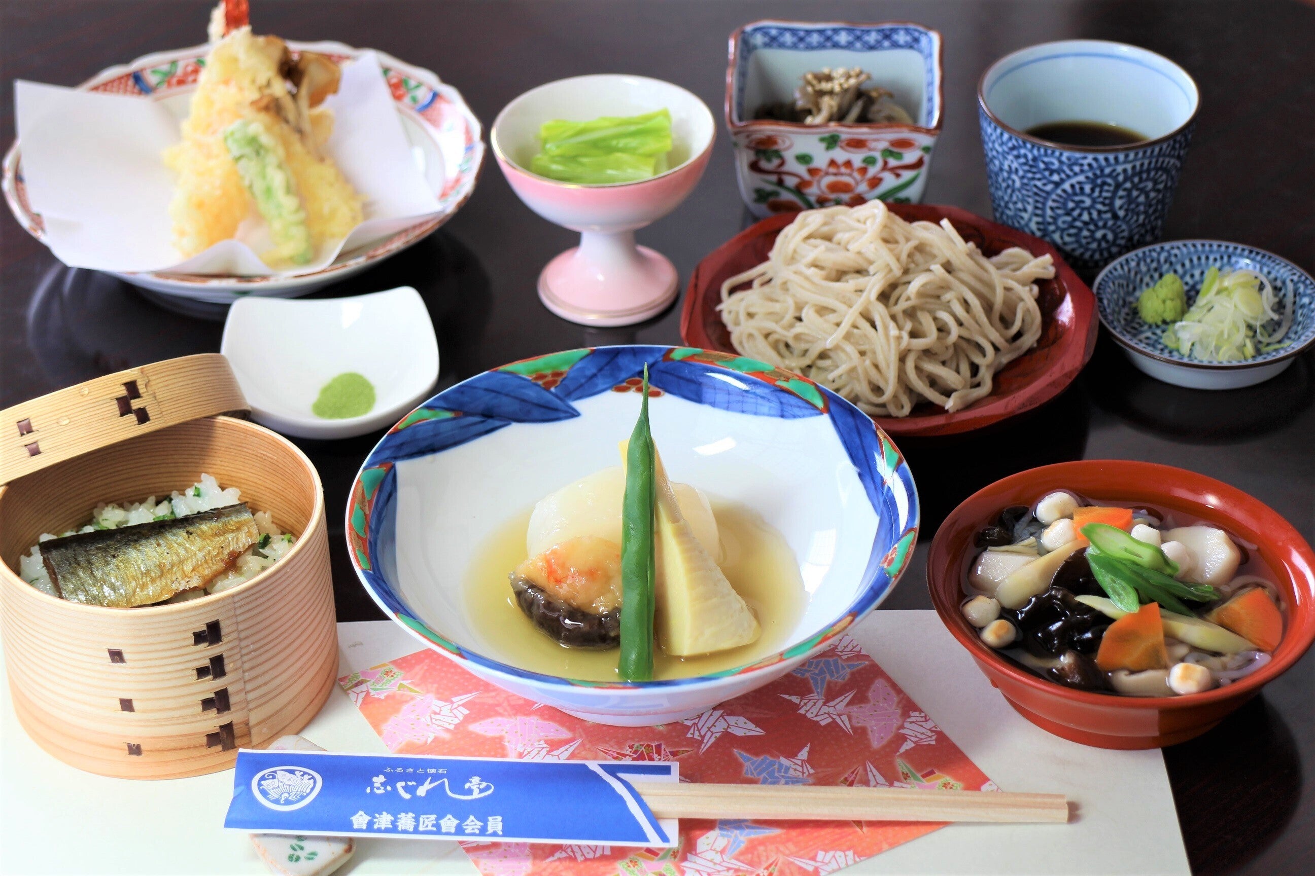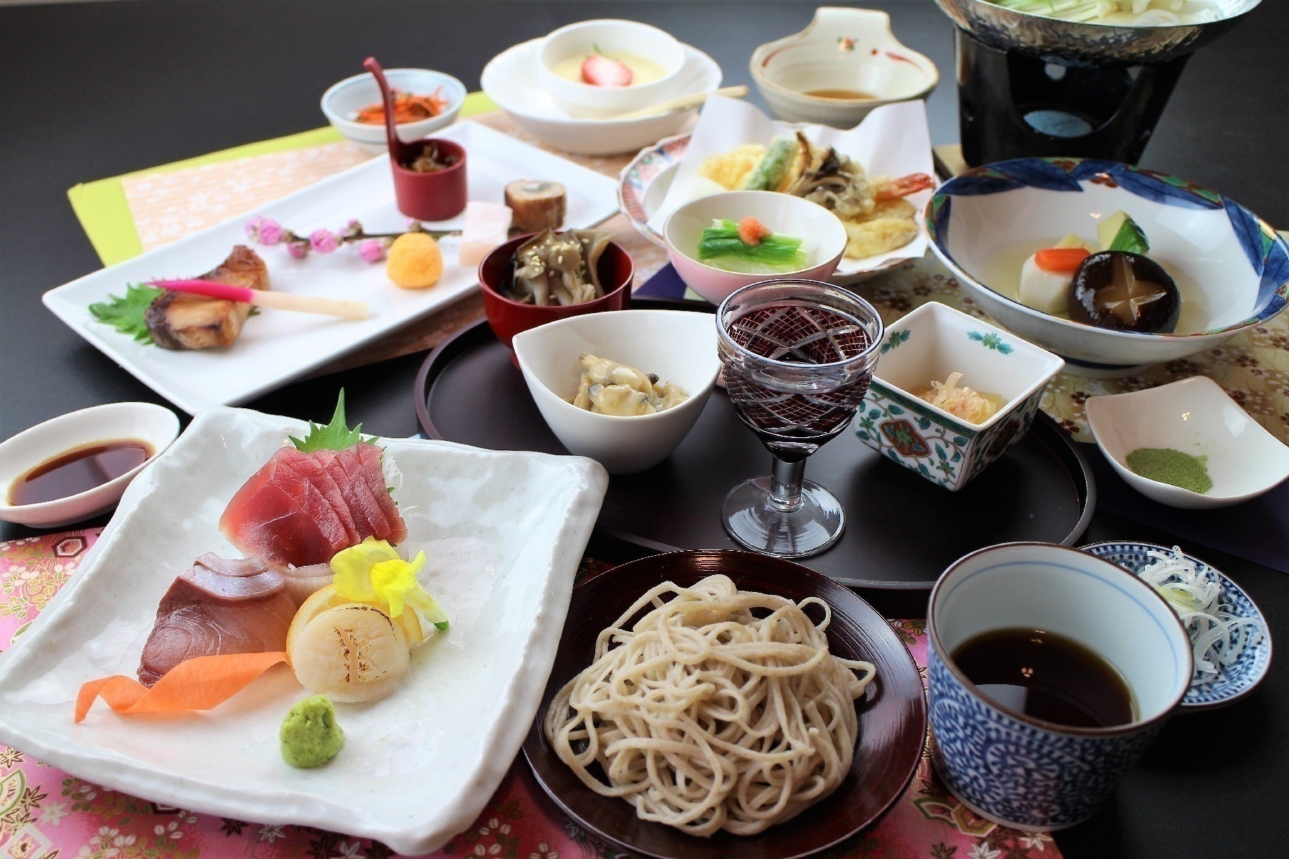 懐石料理の料理長、専属職人による手打ちそばに、お客様のシチュエーションによって郷土料理をバランス良く組み合わせております。