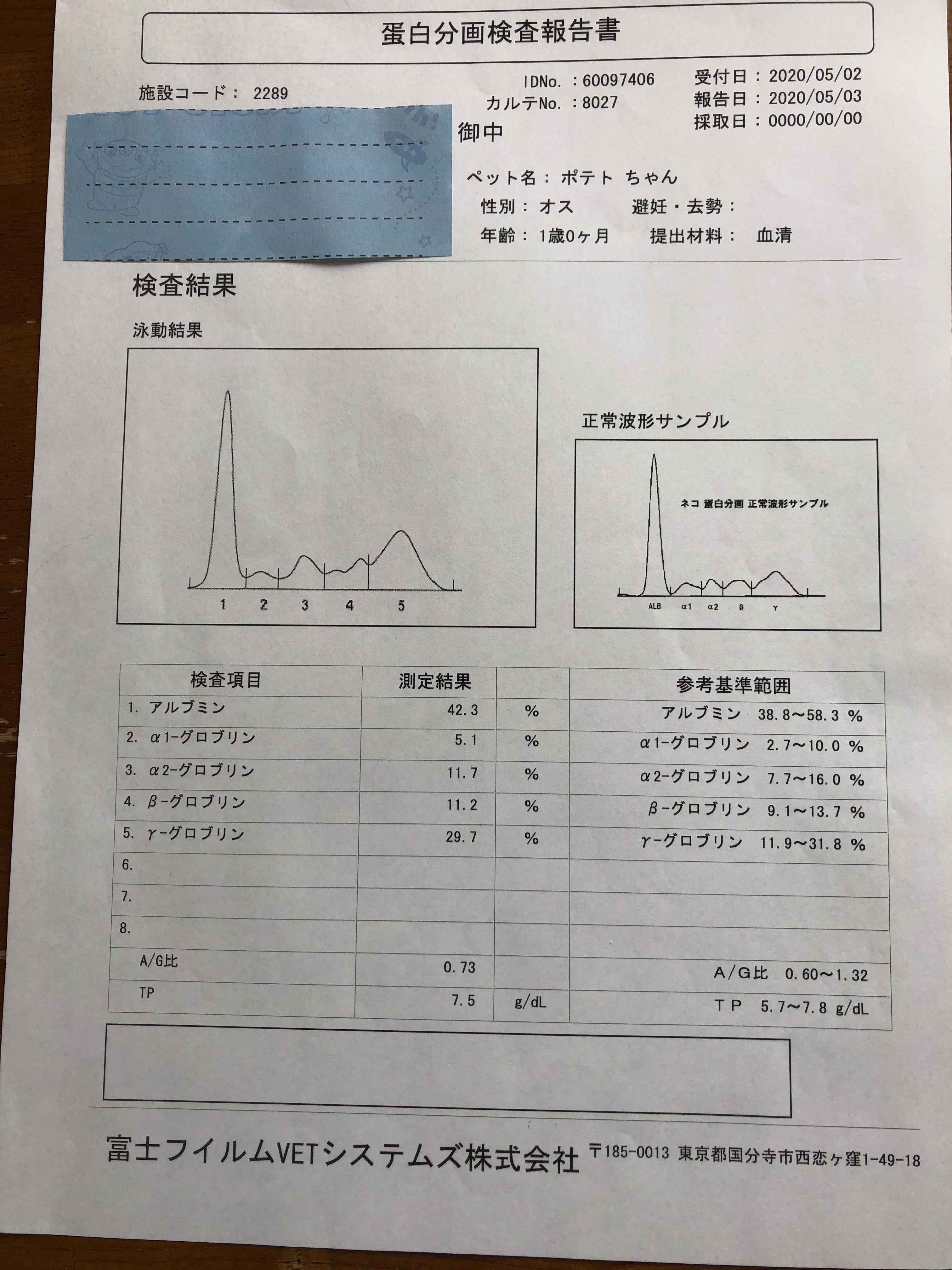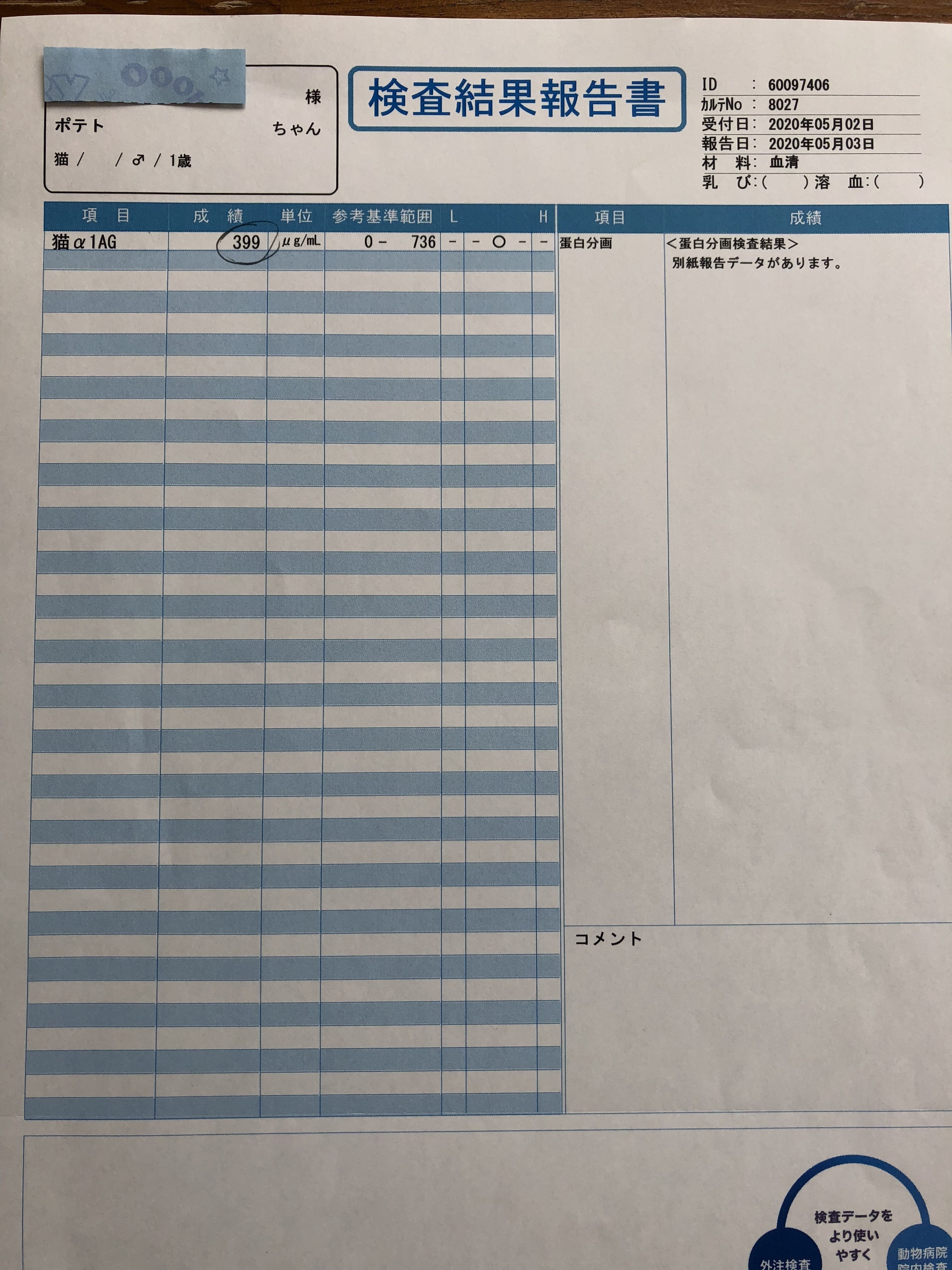 前回の診察時に、外部に依頼していた検査の結果です。どちらも 基準値内の数値でした。今回も外部に依頼した検査結果は、次回の診察時に頂く事になっています。