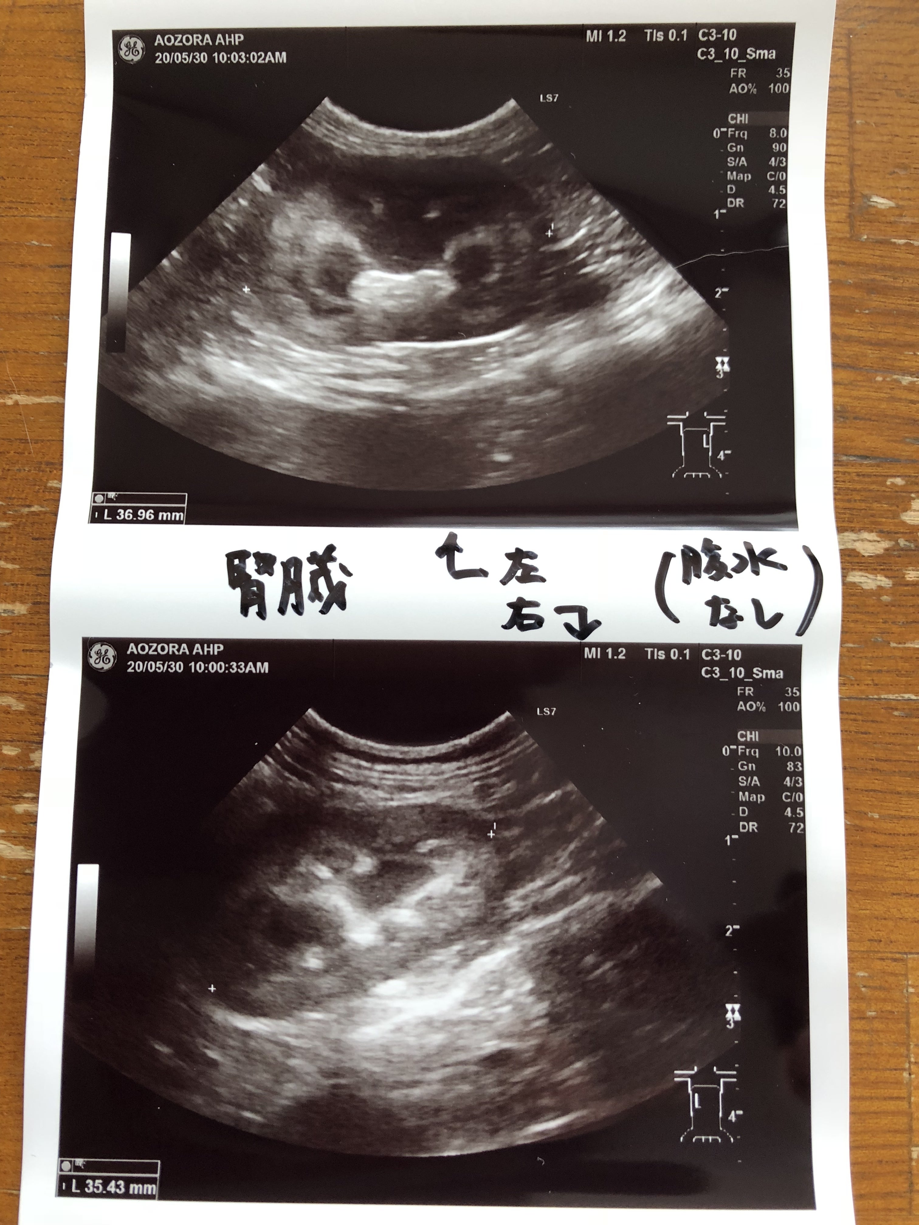エコーの検査結果です。腹水も無く、リンパ節の腫れも見当たらず、異常は無いとの事でした。