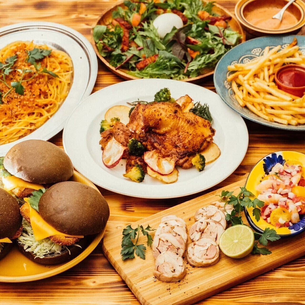 南国料理をメインにご飯ものからアラカルトを多数ご用意しており、お酒はカクテル、焼酎、日本酒、ワイン、シャンパン、ビール(国産サーバー・輸入物ビール〈缶・瓶〉)、自家製コーヒー焼酎など、またご要望に応じましてオリジナルカクテルをお作りもしております。