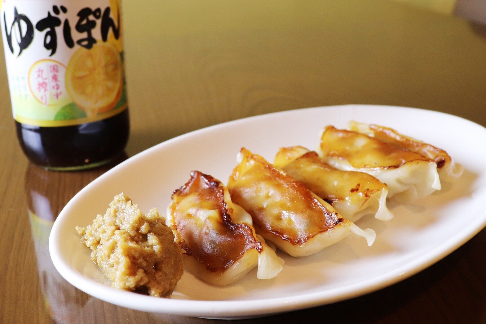 餃子にはゆずぽんと柚子こしょうを混ぜて