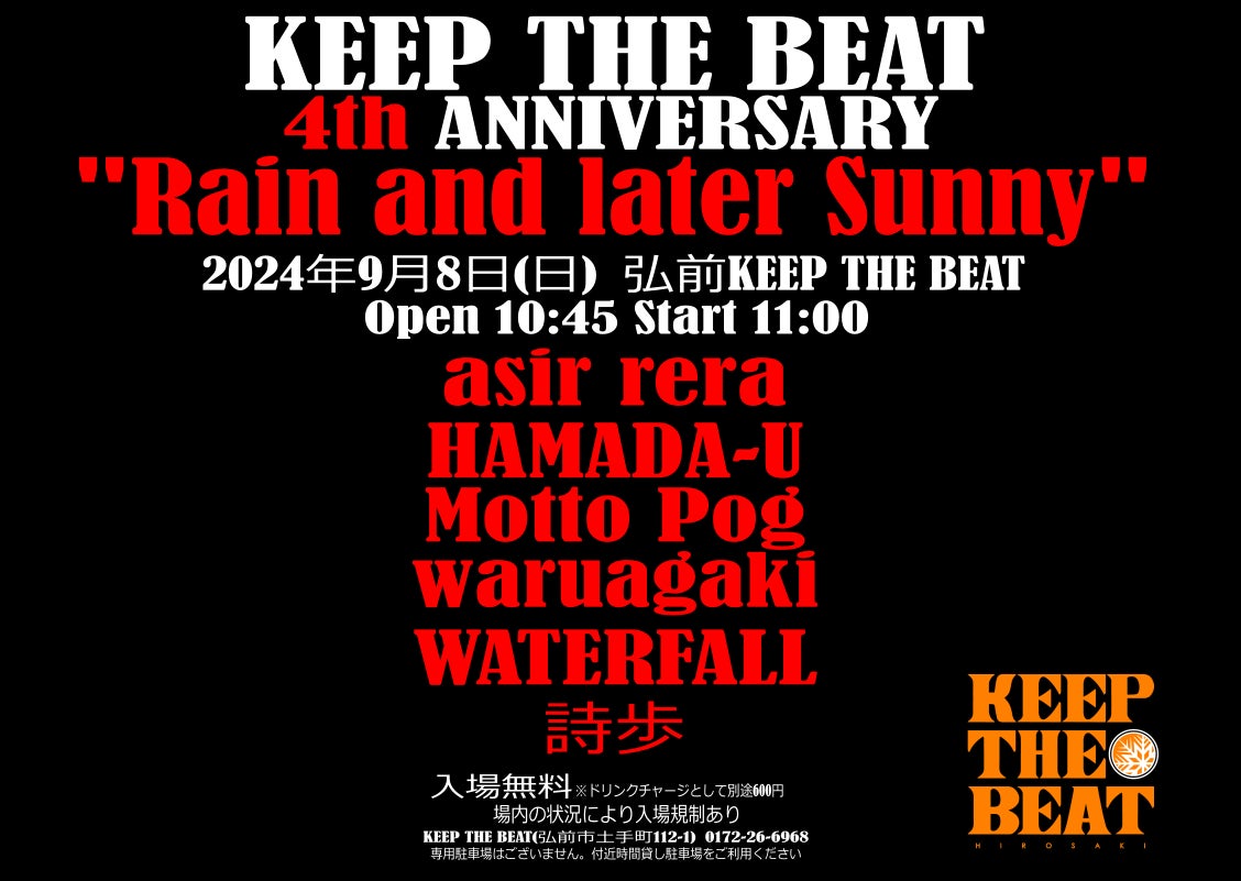 9/8(日)KEEP THE BEAT 4周年 “Rain and later Sunny”