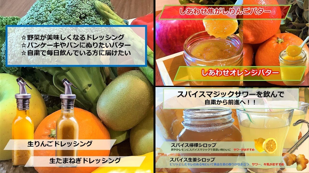 その他、オリジナルの生ドレッシング、自家製果実バター、オリジナル贅沢シロップ(サワー用)など販売致します。
