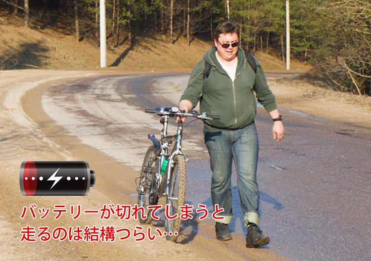 ・長距離走って途中で電池が切れてしまうと、ペダルが重く漕げなくなり大変です!