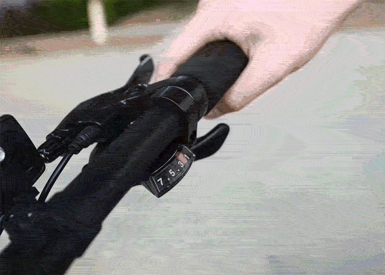 ▶電動システム5段調整+外装7段変速。電池切れの心配は不要!
