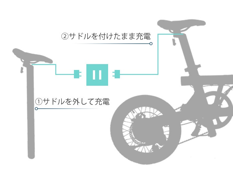 たった3時間のフル充電で50㎞走行していただけます。サドルの下の電源プラグに差し込みするだけで簡単に充電できるし、家に自転車を持ち込みできない時は、シートポストを抜いての充電も可能です。