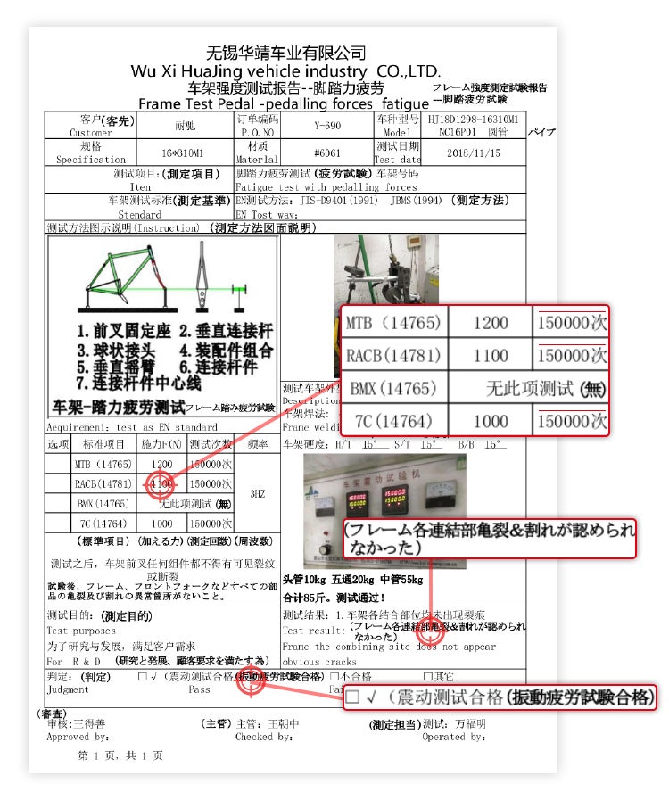 10万回の振動テストや、路上テストを繰り返し、高品質な仕上がりを確認しています。